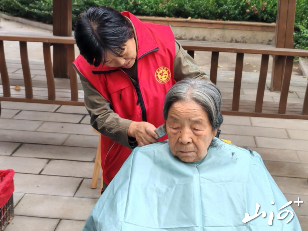 活动一角,杏花红志愿服务中心志愿者化身“理发师”,为老人提供免费理发服务。他们根据老人喜好与脸型设计发型,从围布、梳理到修剪,每一步都饱含心意。“这个长度您满意吗?”“修下鬓角更精神!”亲切对话间,老人们的头发变得整齐利落,精神面貌焕然一新,幸福笑容绽放在脸上。