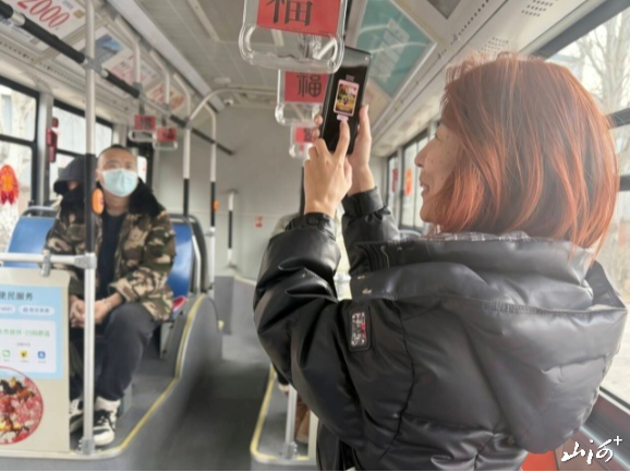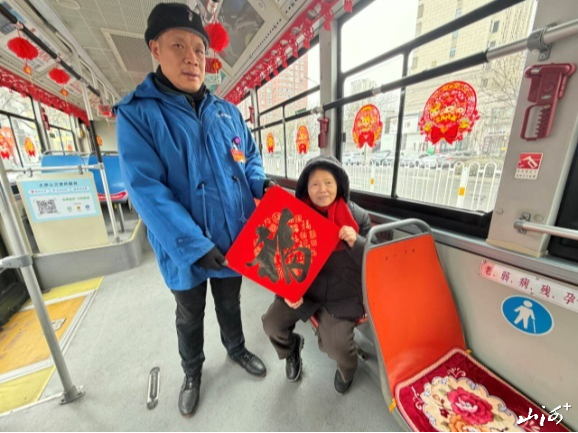 车厢内,驾驶员王志强化身“送福使者”,将提前准备好的“福”字一一送到乘客手中,一句“欢迎乘车,祝您小年吉祥,福气满满”的问候,让车厢里的“福气”愈发浓厚。“坐公交既能扫福还能领到福字,太贴心了!”返乡过年的赵女士刚从外地回到太原,接过福贴又扫码集了福卡,脸上的疲惫瞬间被笑容取代,“一路奔波的疲惫,被这满车厢的福气化解了,感觉新年的好运都来了。”驾驶员王志强也笑着说:“每天看着乘客扫‘福’时的开心模样,听着大家分享集福成功的喜悦,和大家一起感受福气满满,期待来年一起马到成功,我觉得特别幸福。”