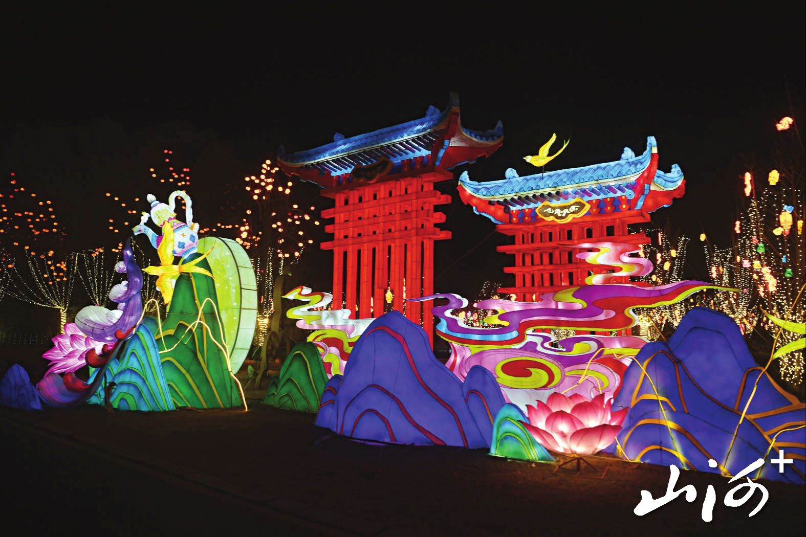 天官王府景区着力打造“国潮”梦境。入口处“天官赐福”打卡点福气迎宾,《美丽国潮》《国潮财神》等特色灯组将传统吉祥形象与现代审美融合。经过精心装饰的城门洞、院落、胡同,以及优化的夜景工程,让游客仿佛步入一个穿越时空的国潮幻境,感受传统文化时尚新生的魅力。