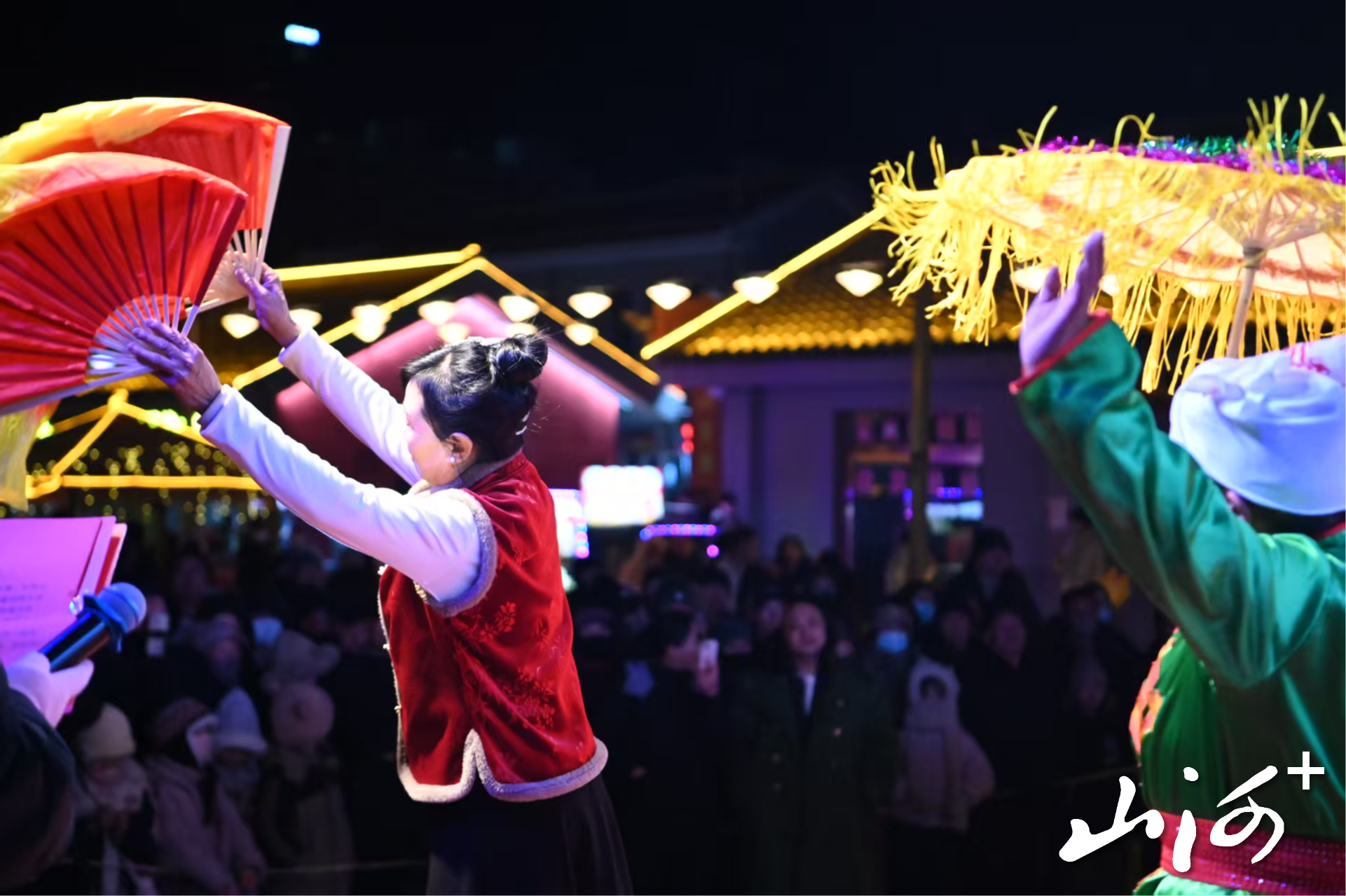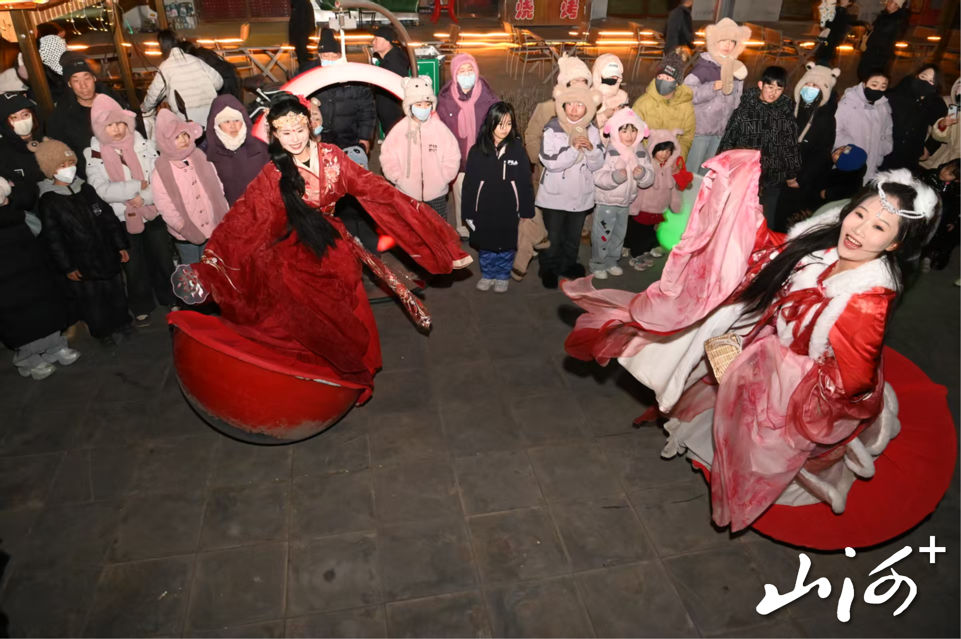 山西晚报·山河+讯 2月10日,在广灵县农贸园区,广灵网红晓晶和晓丽表演的“欢乐不倒翁”节目赢得了现场观众的阵阵掌声与喝彩。