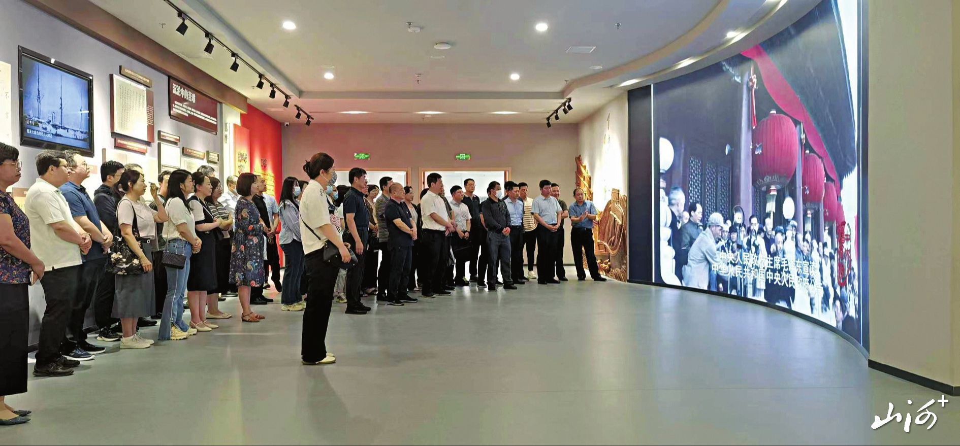 山西晚报·山河+记者在“胜利烽火”档案史料展区看到,陆续有多家省直机关、部队、企事业单位来此参观学习,开展主题党日活动。大家逐一浏览着一幅幅承载历史沧桑的图片、一段段记录奋斗征程的文字、一件件饱含革命激情的珍贵档案,感受着立体鲜活的党史教科书带来的震撼和洗礼。