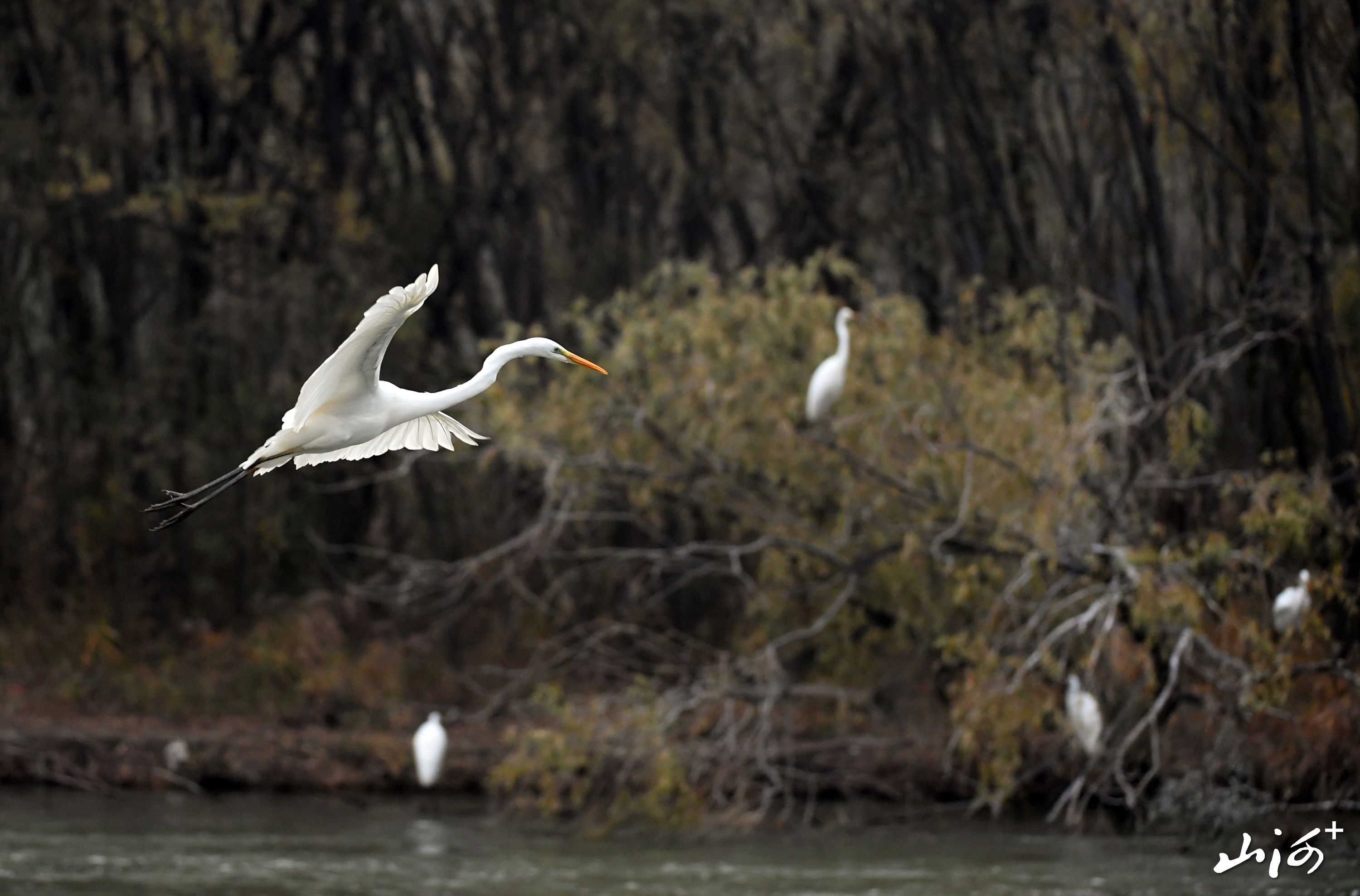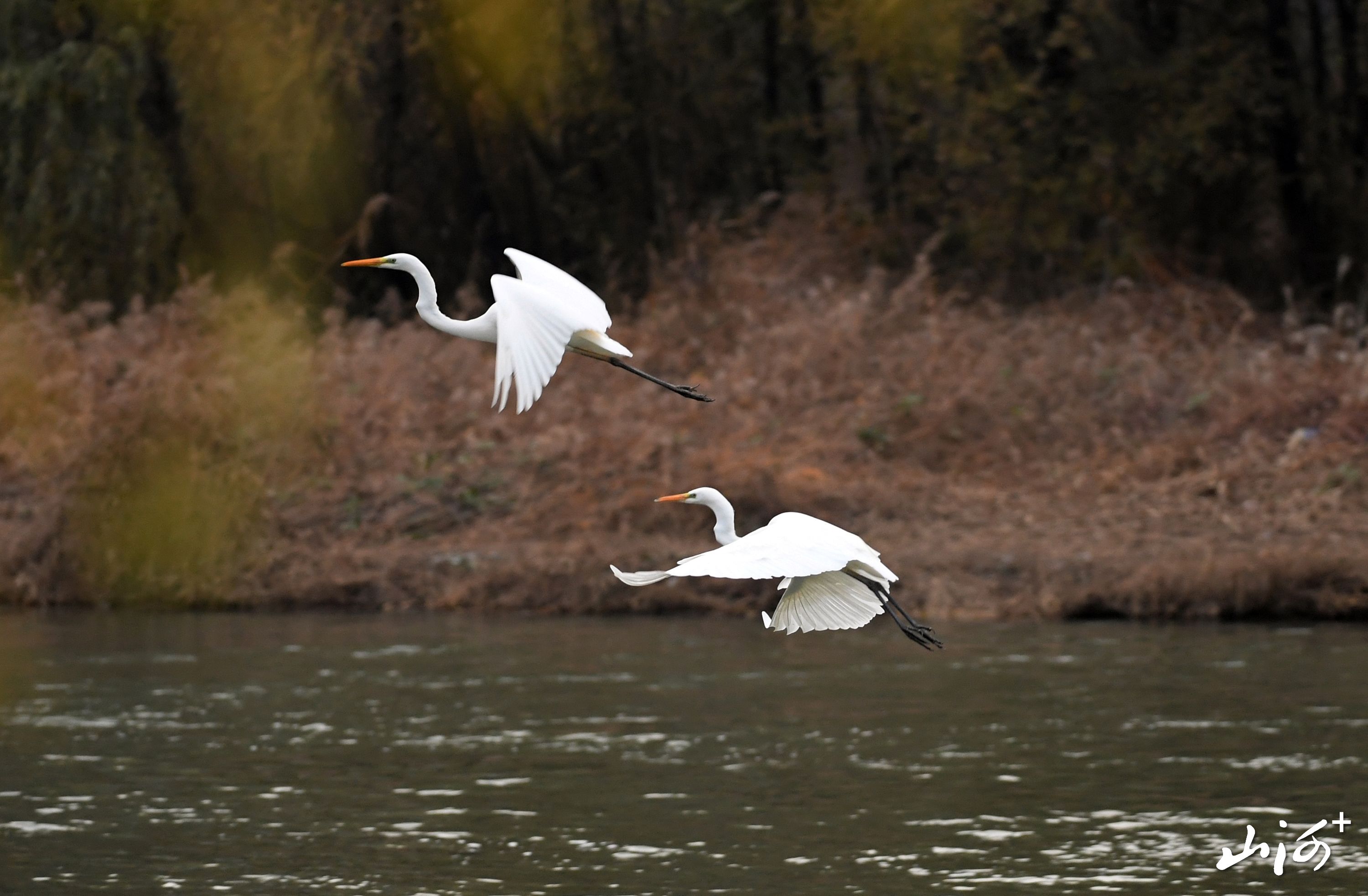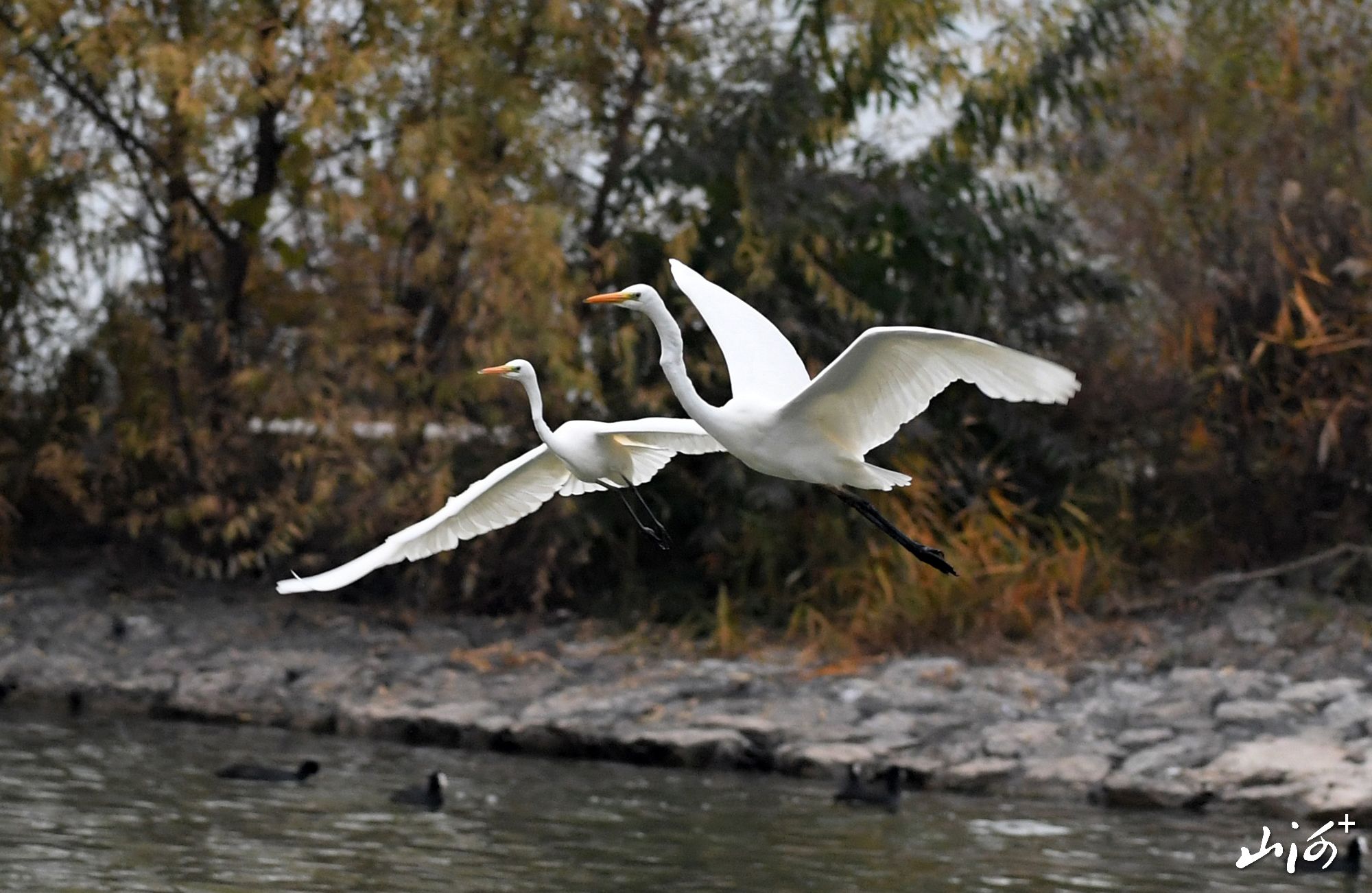 11月5日,太原汾河湿地公园,一群群迁徙而来的白鹭,在此集结过冬。它们时而静立浅滩,时而展翅高飞,素洁的身影与汾水相映成趣。这群“白衣仙客”的到来,让汾河湿地公园充满诗意,更为这座城市增添了一抹动人的生态印记,吸引了众多人驻足围观。