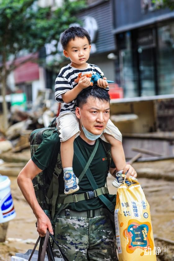 撤离救援现场,武警、消防、公安、民兵,多种救援力量编成一个个党员突击队,争分夺秒转移群众。每一个党员的肩膀扛着的是人民的重量。