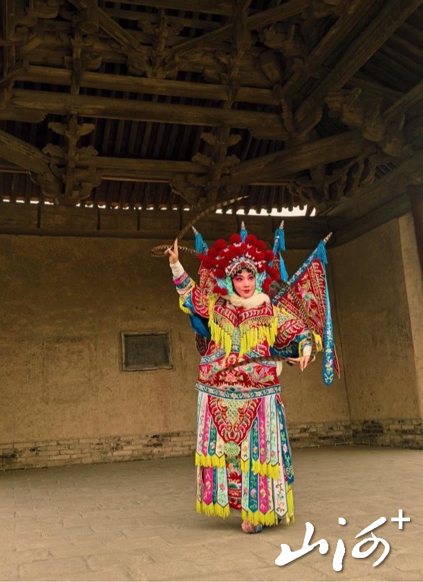 戏台之上,一级演员、第32届中国戏剧梅花奖获得者梁静登台亮相,以舒展身段展现传统戏曲的程式之美。说起在古戏台上演出和在现代剧场演出的区别,梁静说道:“我之前跟着剧团下乡,在不少古戏台都演过戏。和现代剧院比起来,感觉真的很不一样。剧院更规整、更专业,灯光音响都很到位,但和观众之间总隔着一点距离。古戏台就不一样了,它就在乡亲们中间,台上台下离得特别近,那种烟火气、人情味是剧场里没有的。而且老戏台的声场很特别,没有太多扩声,更考验演员的真嗓子、真功夫,一开口,声音在梁柱间绕一圈,那种韵味是现代剧场很难复刻的。站在上面,人会自然而然沉下来,更走心、更入戏。”