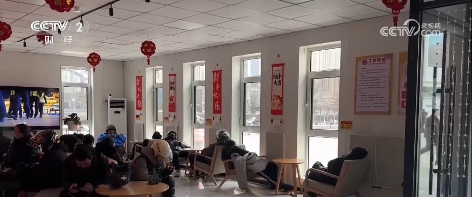 12月2日,大同市大风降温天气持续,室外风力较强,街头行人纷纷身着厚棉衣等御寒衣物出行。大同市区一处户外工作者驿站与室外寒凉景象形成对比的是,驿站内温度适中、环境干爽,成为大风降温天里的一处“暖身港湾”,多名外卖配送员、环卫工人走进驿站歇脚取暖。