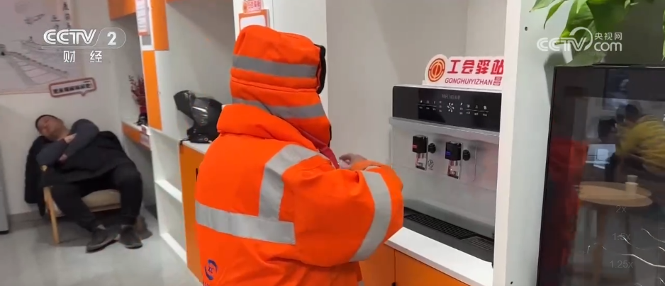 驿站内各类便民设施配备齐全,可满足户外工作者手机应急充电、临时存放物品等需求,同时还提供热开水,药品和针线等物品。当地环卫工人称,驿站给外卖配送员和环卫工人增添了不少的温暖,供水、供暖也挺好。