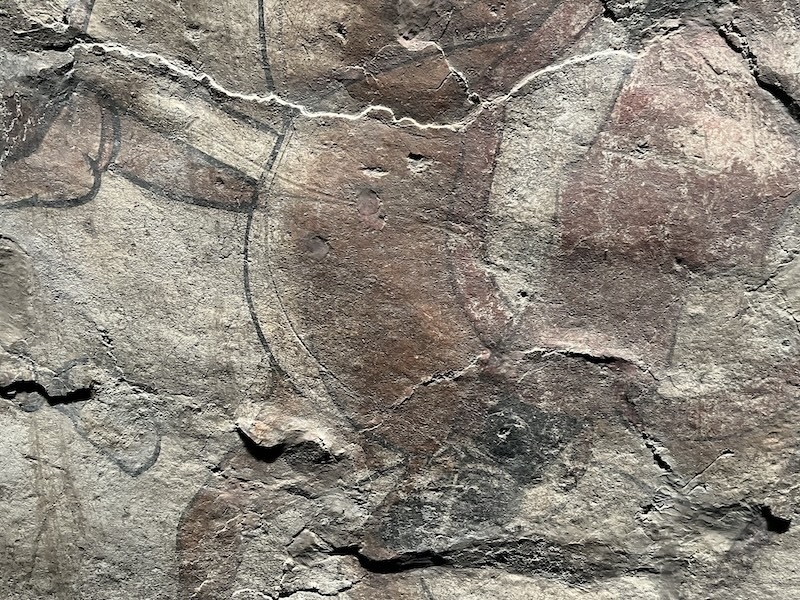 壁画中可见用尖锐工具进行勾勒打草搞的痕迹