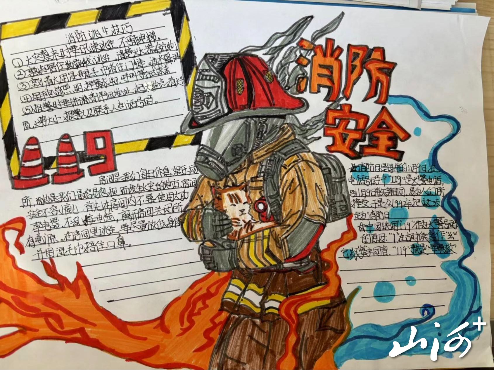 此外,学校还开展了“我心中的火焰蓝”主题绘画活动。孩子们用五彩画笔勾勒消防员逆行的身影、描绘家庭防火场景、设计消防安全提示标语,用充满童真的笔触展现对安全的理解与对英雄的崇敬。