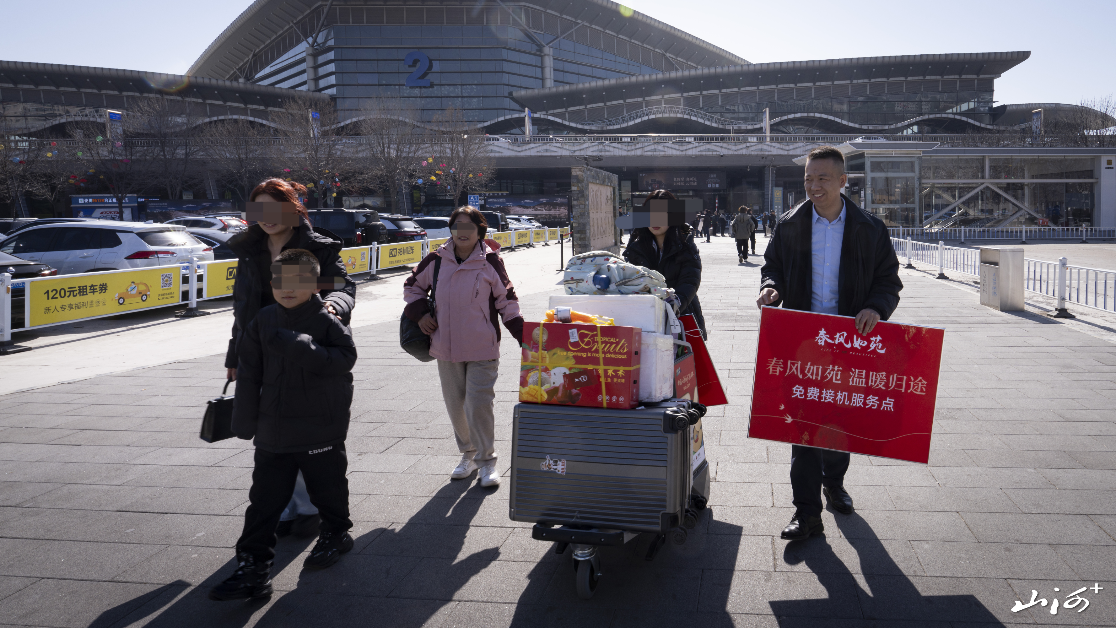 下午,太原迎来小幅升温。T2航站楼出口处,志愿者宋师傅的热情如当空的暖阳一般,每当有旅客拖着行李走出,他便迎上前:“您好,春风如苑免费送您回家,需要乘车吗?”