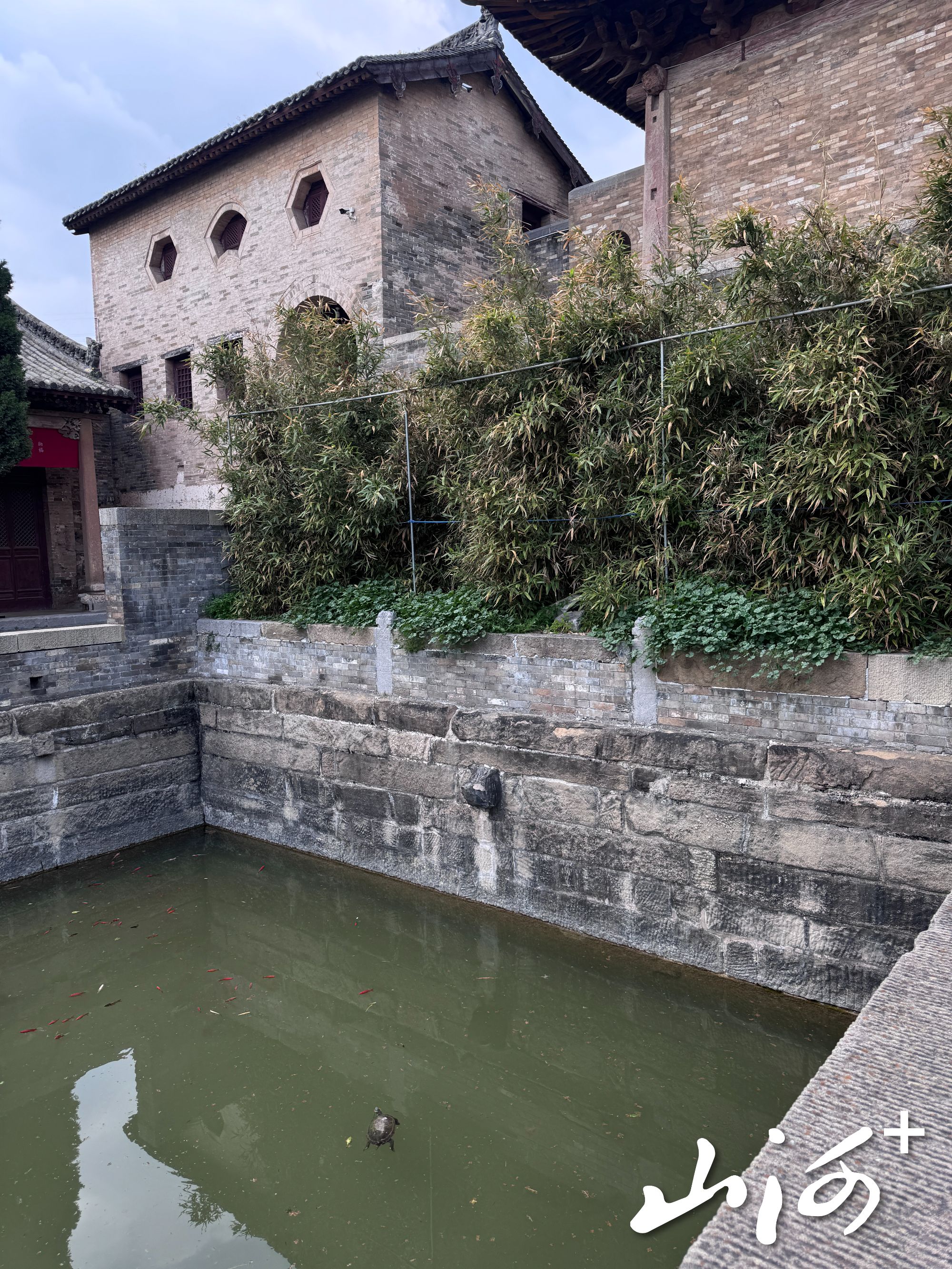 在工作人员的讲解下,采访团逐一探访庙宇核心景观。门前“断臂石狮”古朴沧桑,见证岁月流转;院内鱼沼清泉潺潺,古时曾是村民判断旱涝的“天然标尺”;元代舞楼十字歇山顶造型独特,金代石柱纹理清晰,尽显古建营造技艺;主殿天齐殿作为宋代原构,单檐歇山顶出檐深远,石刻门框上的牡丹、荷花线刻灵动细腻,砖雕神台、木雕神龛工艺精湛,与殿内遗存相得益彰,合称“镇庙三宝”,生动展现了古代工匠的高超技艺。