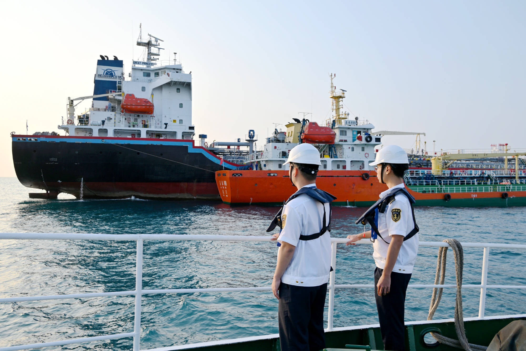 3月18日,“嘉泰699”在洋浦1号外锚地为外籍船“GREAT PRICESS”完成加注燃料油(央广网发 洋浦海事局供图)