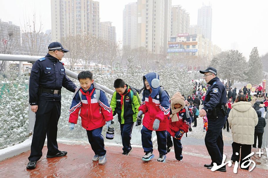 12月12日,临汾迎来降温降雪天气,道路交通安全风险陡增。全市公安民警以雪为令、迅速响应,在冰雪恶劣天气下,从道路冰雪清理、应急救援、交通指挥、护学,到车辆安全协助等全链条服务,多项行动守护交通安全与群众安全出行。(山西晚报·山河+记者 刘江 通讯员 范建刚)