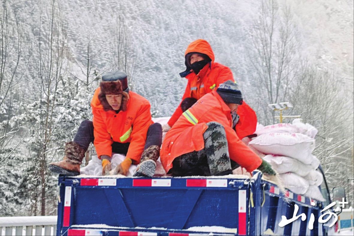 与此同时,保障干线公路畅通的任务也在紧张进行。12月12日凌晨,山西省公路局阳泉分局工作人员无惧严寒,坚守一线,在辖区国省干线公路上持续开展除雪融冰作业。