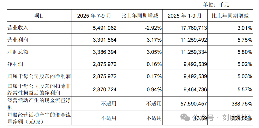 利润端的表现同样疲软,前三季度归母净利润94.93亿元,同比增幅5.03%,较上半年的7.29%进一步收窄,第三季度单季净利润同比微增0.16%,增长几乎陷入停滞。
