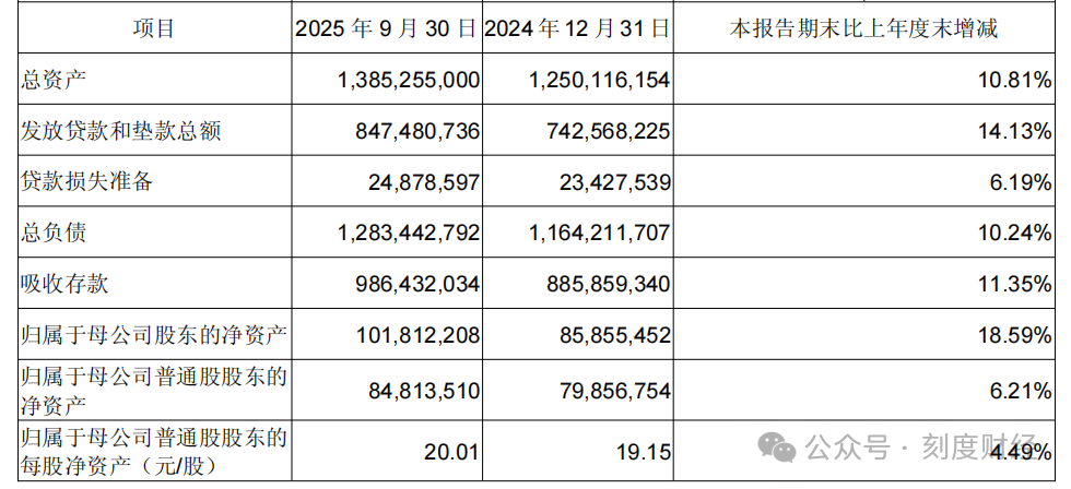 截至2025年9月末,成都银行总资产达1.39万亿元,较年初增长10.81%。
