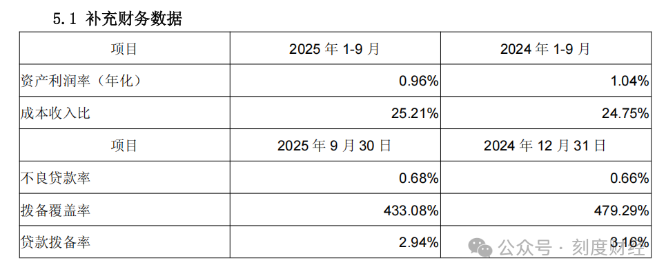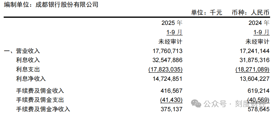 图源:成都银行2025年三季度报告