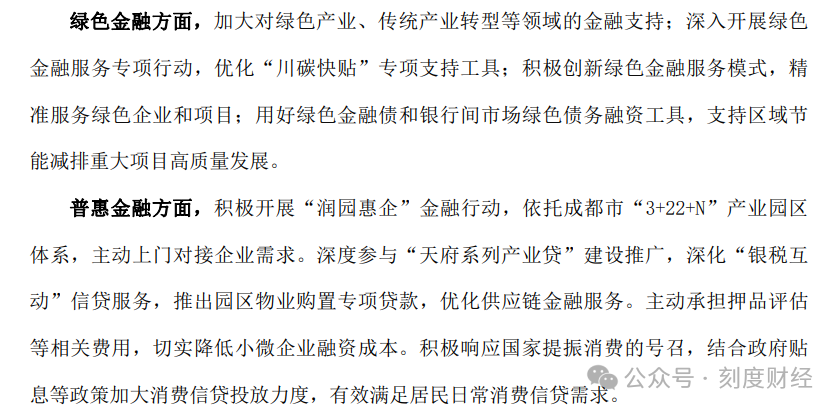 绿色金融领域,绿色信贷增速较快,重点支持清洁能源、环保产业及成渝地区生态修复项目。普惠金融领域,将普惠小微贷款利率降至3.3%,服务覆盖超1万家企业,助力区域小微企业发展。