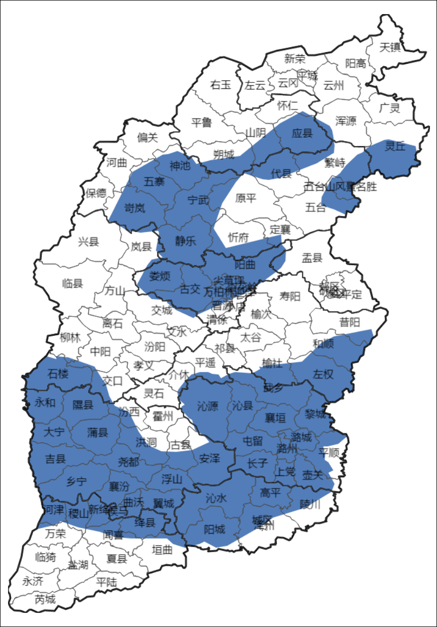 山西省气象台2026年04月24日16时01分发布雷暴大风蓝色预警,预警区域:大同市东部、朔州市东部、忻州市、太原市、阳泉市西部、吕梁市南部、晋中市南部、临汾市、运城市北部、长治市、晋城市。
