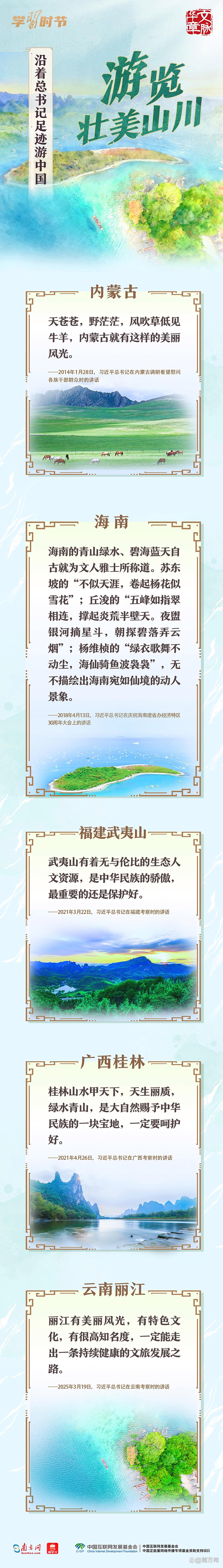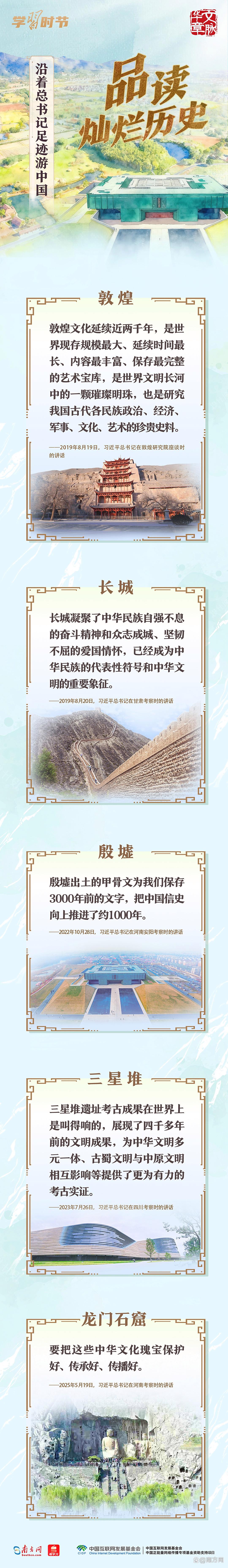 今年国庆巧遇中秋,正是出游好时节。让我们循着习近平总书记的足迹,寻溯中华文化、品读灿烂历史、游览壮美山川、领略城市风光,一起感受多彩中国的无穷魅力。