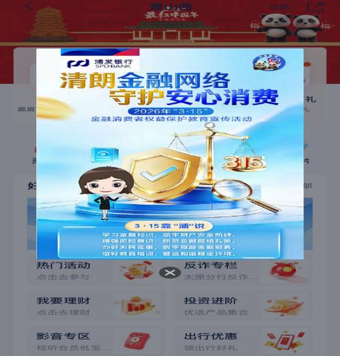 为深入践行金融为民理念,浦发银行太原分行以“清朗金融网络 守护安心消费”为主题,统筹全辖网点与外拓场景,全面启动多层次、广覆盖、有温度的2026年“3·15”金融消费者权益保护教育宣传活动,切实守护群众“钱袋子”,营造安全、清朗、放心的金融消费环境。