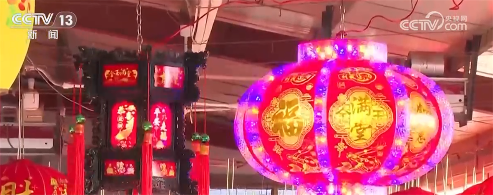 在红美宫灯厂的生产车间,灯笼真是节日的氛围担当,大红的灯笼高高悬挂,红红火火的喜庆氛围就有了。