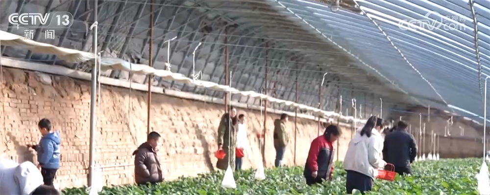 高标准日光温室大棚整齐排列,通过现代农业技术的赋能,这里的草莓实现冬季挂果、蔬菜四季常青,引得周边市民游客纷至沓来。游客们提着果篮穿梭在翠绿的垄间,欢声笑语与果蔬清香交织,勾勒出一幅热闹的田园图景。