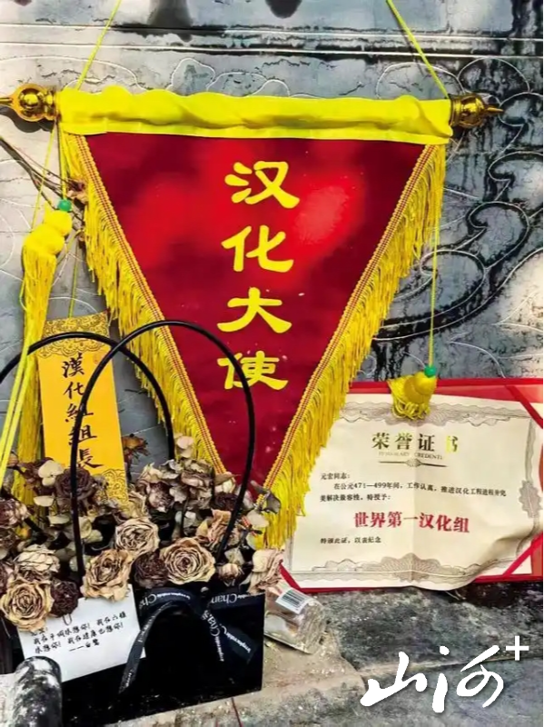 在陕西霍去病墓前,常见薯片、辣条等零食——这位23岁英年早逝的少年将军,被大学生们视为“同龄人”“正是爱吃零食的年纪”;在北魏孝文帝拓跋宏(后改名元宏)墓前,有人挂上锦旗,上书“汉化大使”,还有人送上手写奖状——“最佳汉化组”,以嘉奖他作为鲜卑族皇帝力推汉化改革的历史功绩。
