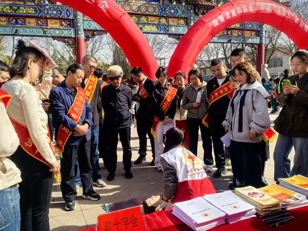 活动现场,朔州市红十字会工作人员向过往群众积极宣传国家安全知识,讲解国家安全的重要性,引导群众增强国家安全观念、筑牢安全思想防线。同时,工作人员现场发放《中华人民共和国红十字会法》《中国红十字会章程》《山西省红十字会条例》(修订版)及“三救三献”等宣传资料,并结合红十字主责主业,重点向群众普及应急救护、无偿献血、造血干细胞捐献等生命健康知识。
