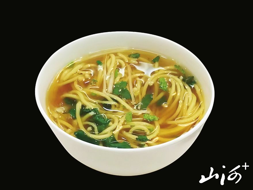 漂抿曲大约从明朝就开始风行于阳泉,当地人也叫它“小河捞”。将绿豆粉掺少量白面和在一起,经特制的抿曲床压制,入沸水一煮,立刻就在汤面上漂起来,一根根清清爽爽,细如毛粉,长如挂面。熟得快,吃得也快,盛进碗里,浇上用豆叶菜熬成的卤,再加点白胡椒粉,一股清香扑鼻而来。豆叶菜是阳泉乡下特有的土菜,用小豆叶或黄豆叶加工沤制而成,酸香开胃。漂抿曲吃起来利口,还有消火消暑的功效。明末清初的傅山先生曾写过《小河捞记》,来称赞它的形态味道,细细软软的一绺一绺的面条漂在汤里,简简单单,却自有一种轻灵的风致,虽是家常滋味,却是最为养人。
