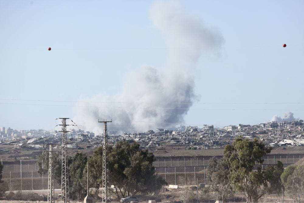 这是2025年9月16日从加沙边境以色列一侧拍摄的加沙地带遭袭后升起浓烟。新华社发(贾马尔·阿瓦德摄)