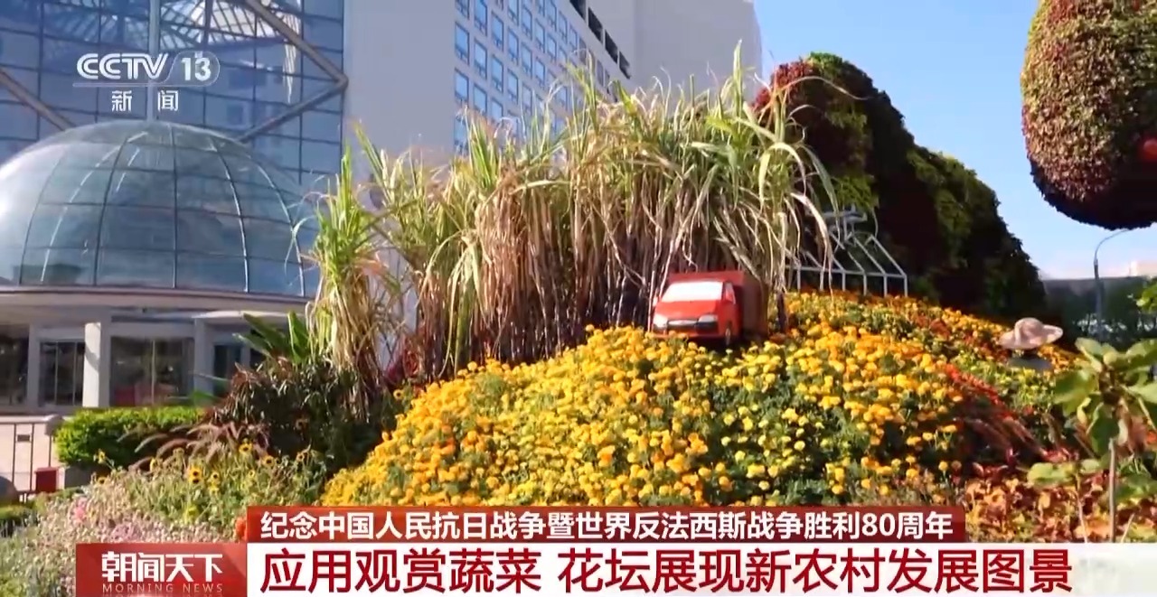这边还能看到有一排甘蔗,这也是创新性地在花坛中首次应用这些农作物材料和观赏蔬菜,还原生产场景,展现农旅融合、经济自足的新农村发展模式。