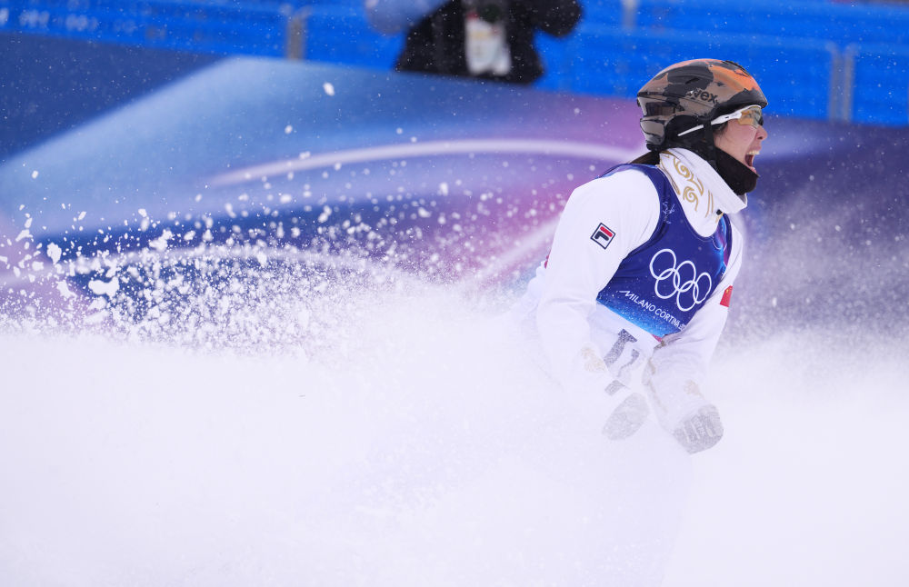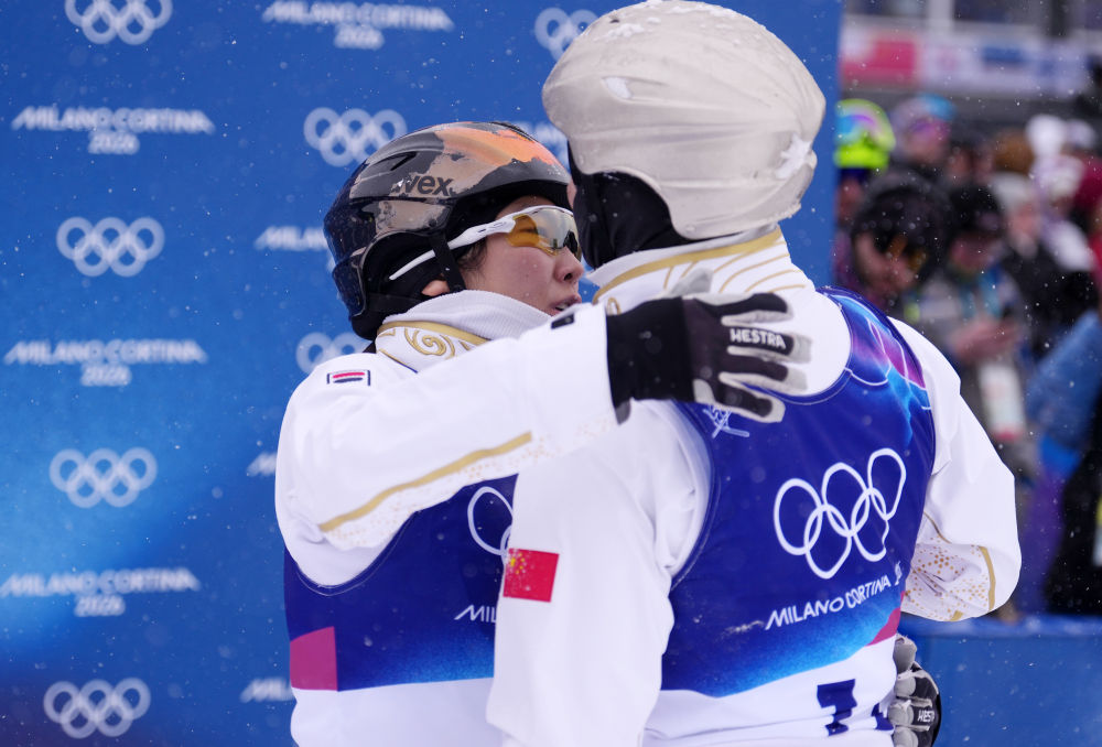 当地时间2月21日,在意大利利维尼奥举行的米兰-科尔蒂纳冬奥会自由式滑雪空中技巧混合团体决赛中,中国队获得季军。