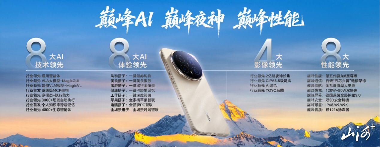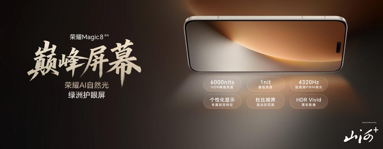 此外,荣耀Magic8系列在通信、安全、可靠性与音质上全面拉满。自研“五芯六翼”架构搭配首发荣耀鸿燕AI云图,全系采用荣耀巨犀玻璃,10倍抗跌耐摔同时支持IP68、IP69、IP69K满级防尘防水。首创开放音腔技术搭配双1216顶级扬声器与自研AI声场算法,带来环绕低音炮级音效。还在设计上专为标准版打造“最美小直屏”,Pro版推出“优雅微曲屏”,兼顾颜值与持握手感。