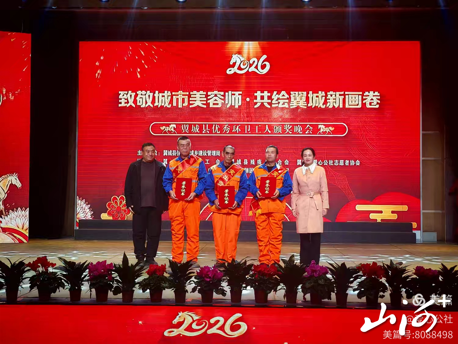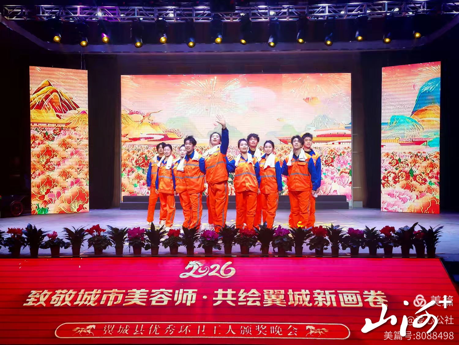 山西晚报·山河+讯 2月5日,临汾翼城县举办优秀环卫工人颁奖晚会,向默默奉献的环卫工作者致敬和感谢。