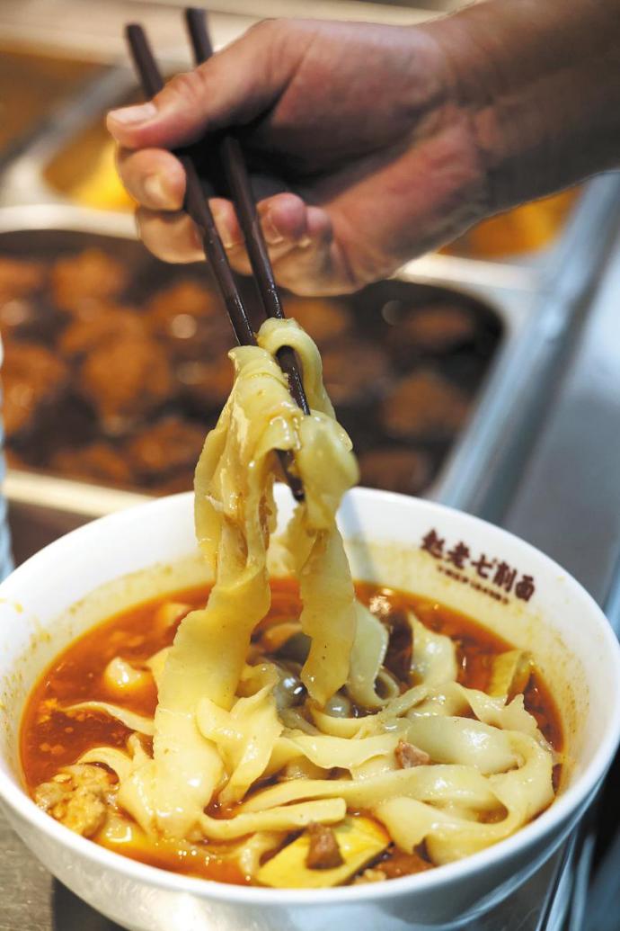 即便如今面食制作已实现机械化,赵喜平依然坚持手工削面。
