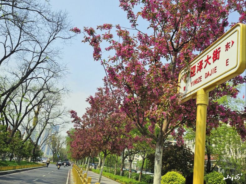 作为迎泽大街核心观花树种,绚丽海棠栽植规模突出,道路人行带以高杆绚丽海棠塑造挺拔轮廓,机非隔离带选用低杆绚丽海棠营造紧凑花境,部分游园搭配少量西府海棠,层次丰富、景致雅致。目前,绚丽海棠最佳盛放期为4月中旬至4月底,西府海棠花色粉嫩,在景观布局上,迎泽大街以高大国槐为背景骨架,海棠为中层核心,地被植物为底层点缀,遵循高低错落、乔灌草结合、色彩互补原则,搭配丁香、紫叶李、连翘、榆叶梅、木槿、日本晚樱等开花树种,按花期科学搭配,实现季相分明、四季常绿,形成连续流畅的主轴花廊。