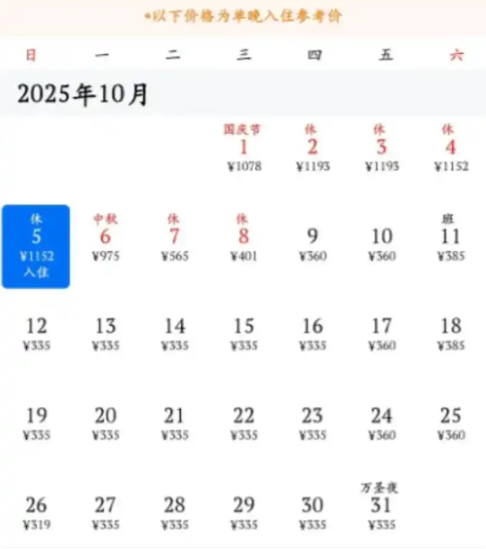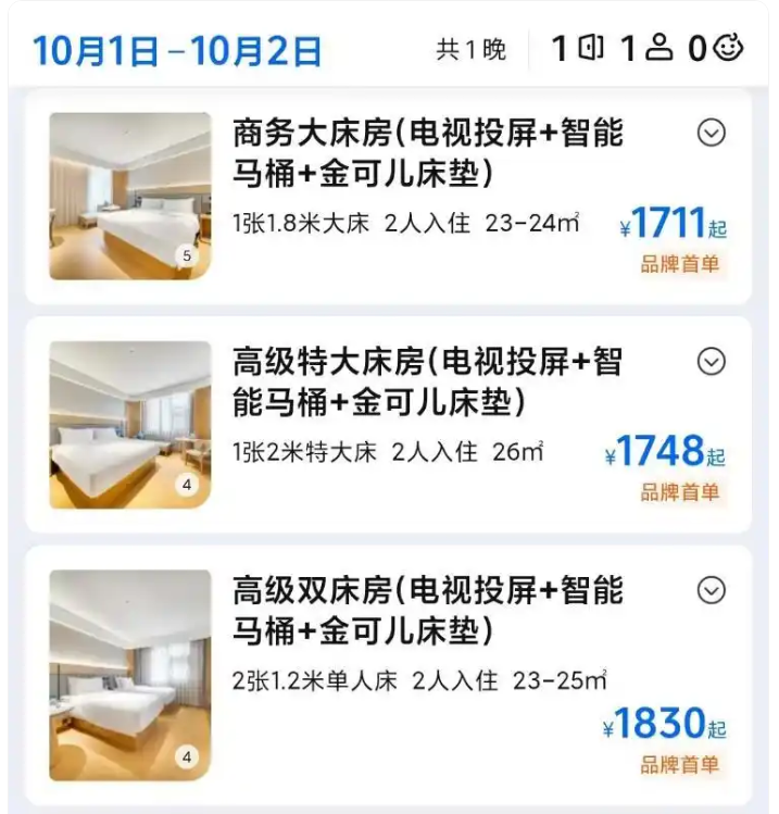 游客高先生(化名)表示,他9月16日入住汉庭酒店(阿尔山新城街店),就看到当天的房价已经是1000元左右。“我提前一个半月订的600多元,现在订更贵,全国最贵的汉庭。”9月25日,山西晚报·山河+记者在多个预订平台看到,从9月30日起,汉庭酒店(阿尔山新城街店)双床房就是1500元起,随后上涨到1700多元,一直到10月6日回落到1500多元,8日回落到800元左右,11日回落到200元左右。