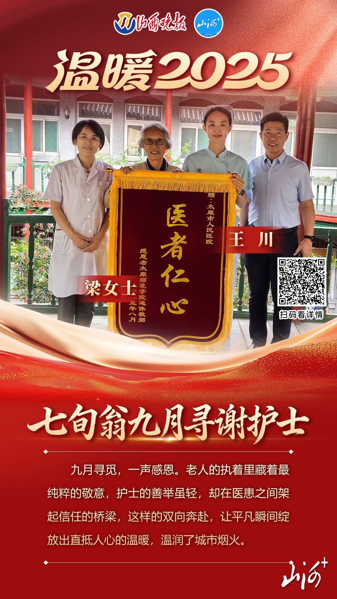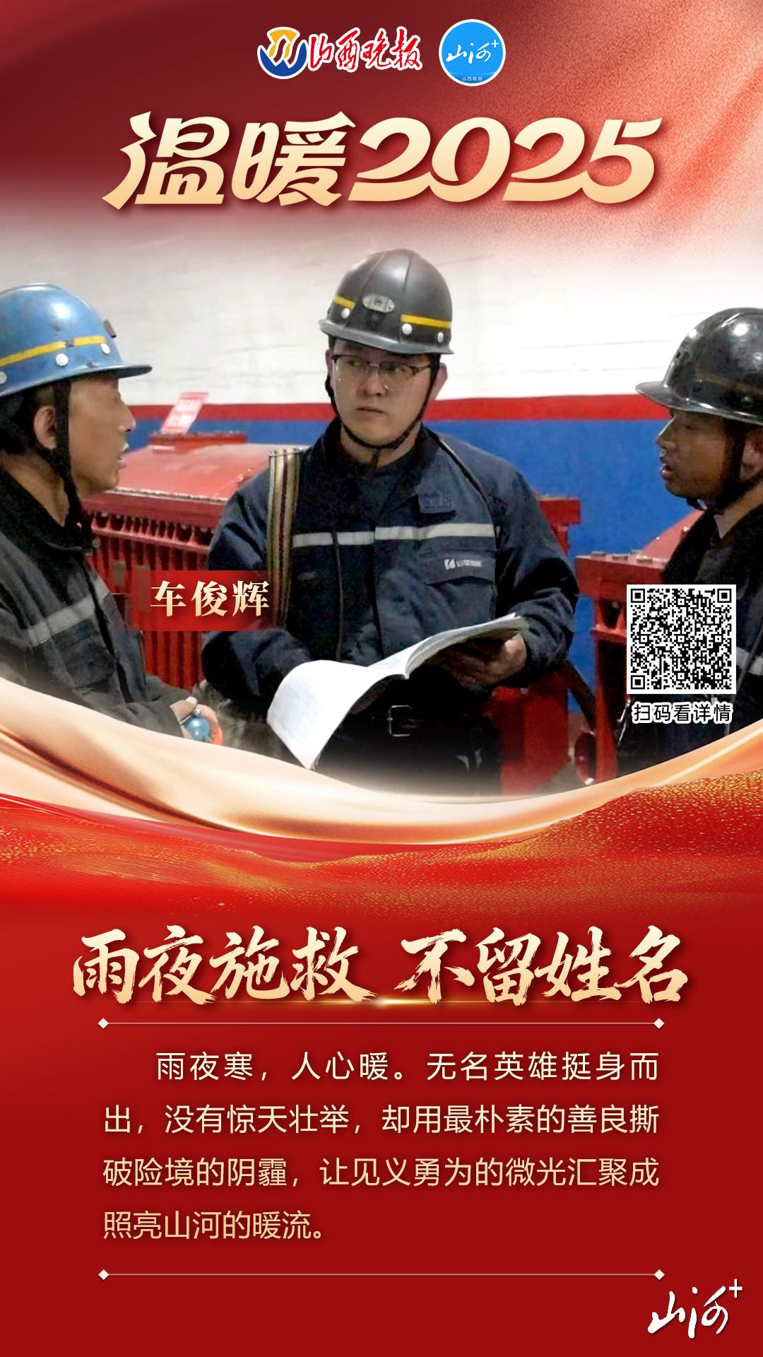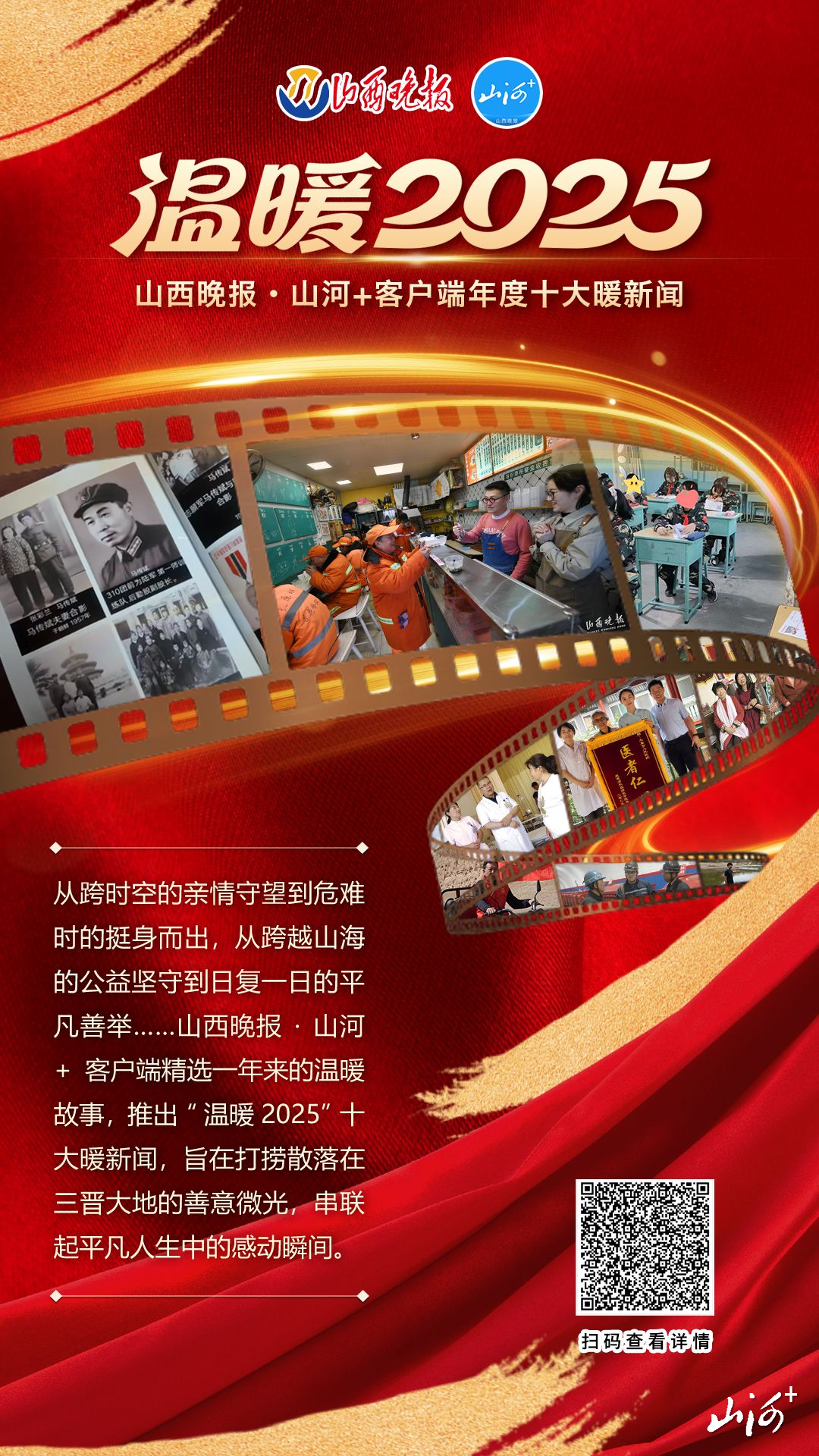 从跨时空的亲情守望到危难时的挺身而出,从跨越山海的公益坚守到日复一日的平凡善举……山西晚报·山河+客户端精选一年来的温暖故事,推出“温暖2025”十大暖新闻,旨在拣选在三晋大地的善意,串联起平凡人生中的感动瞬间。