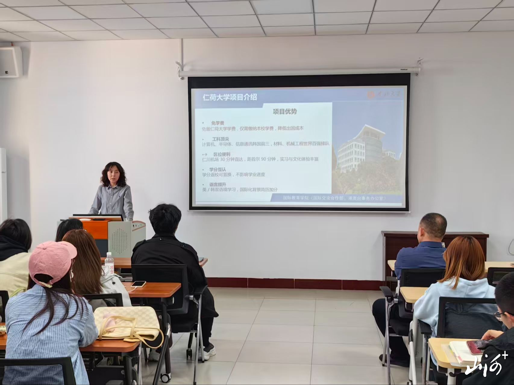 项目推介环节,多位负责人分别对优质海外交流项目进行详细介绍。王莉莉老师重点讲解韩国仁荷大学免学费交换生项目、新加坡南洋理工大学暑期访学项目,就申请条件、课程内容、费用减免、住宿安排及学分认定等内容逐一说明。澳门科技大学项目负责人杨斌,则针对2026年秋季学期第十期交换项目,从课程设置、学术资源、文化环境及报名流程、材料提交、审核标准等方面进行系统梳理,为学生提供清晰指引。