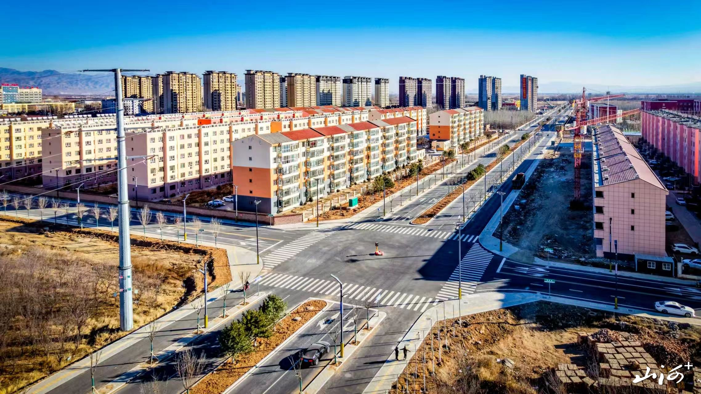 冬日暖阳,洒在新铺的柏油路面上,泛着润泽的光。1月26日,记者来到县城新区大泉山街上,脚下是平坦如砥的崭新沥青,标线洁白醒目,向前方舒展延伸。道路两旁,新植的国槐等亭亭而立,虽已落叶,挺拔的枝干却在晴空下勾勒出疏朗的线条,与不远处的楼宇相映成趣。