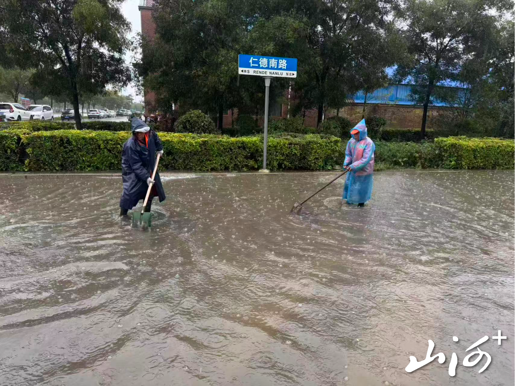 山西晚报·山河+讯 10月10日,山西晚报·山河+记者微信里的一条朋友圈引起了注意,图片中都是环卫工人在雨中工作的场景。他们有的双脚踩在没过脚踝的积水中,裤腿早已湿透,却依然紧握铁锹,一点点清理路面因雨水退去后留下的枯枝、塑料袋等垃圾;有的俯身弯腰,把手伸进浑浊的水里摸索,仔细找到下水盖位置,用手抠出堵在井盖口的淤泥和杂物;有的手持铁锹,和清运车相互配合,通过机械作业清理大面积积水,再以人工跟进处理死角,齐心协力让积水路段尽快畅通。