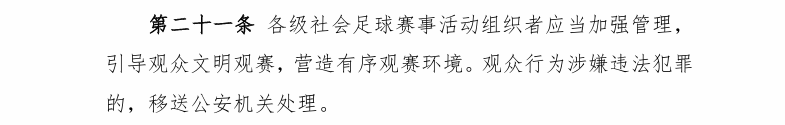 山西晚报·山河+记者注意到,2025年8月25日,中国足协官网印发了《中国足球协会社会足球赛事活动赛风赛纪管理办法(试行)》。其中第九条规定,社会足球各参赛主体应按照“谁参赛、谁负责”原则,承担赛事活动的赛风赛纪管理职责;第二十一条明确,赛事组织者应加强管理,引导观众文明观赛,营造有序观赛环境。如观众行为涉嫌违法犯罪,将移送公安机关处理。