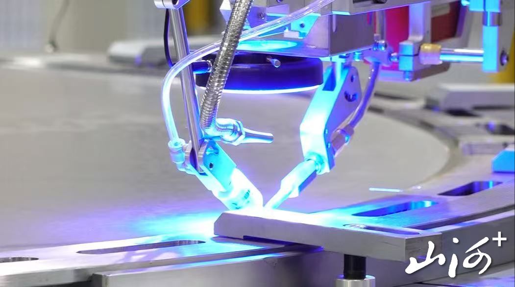 在潞安化机新能源装备分公司生产车间,镍丝网激光焊接机正在进行焊接作业