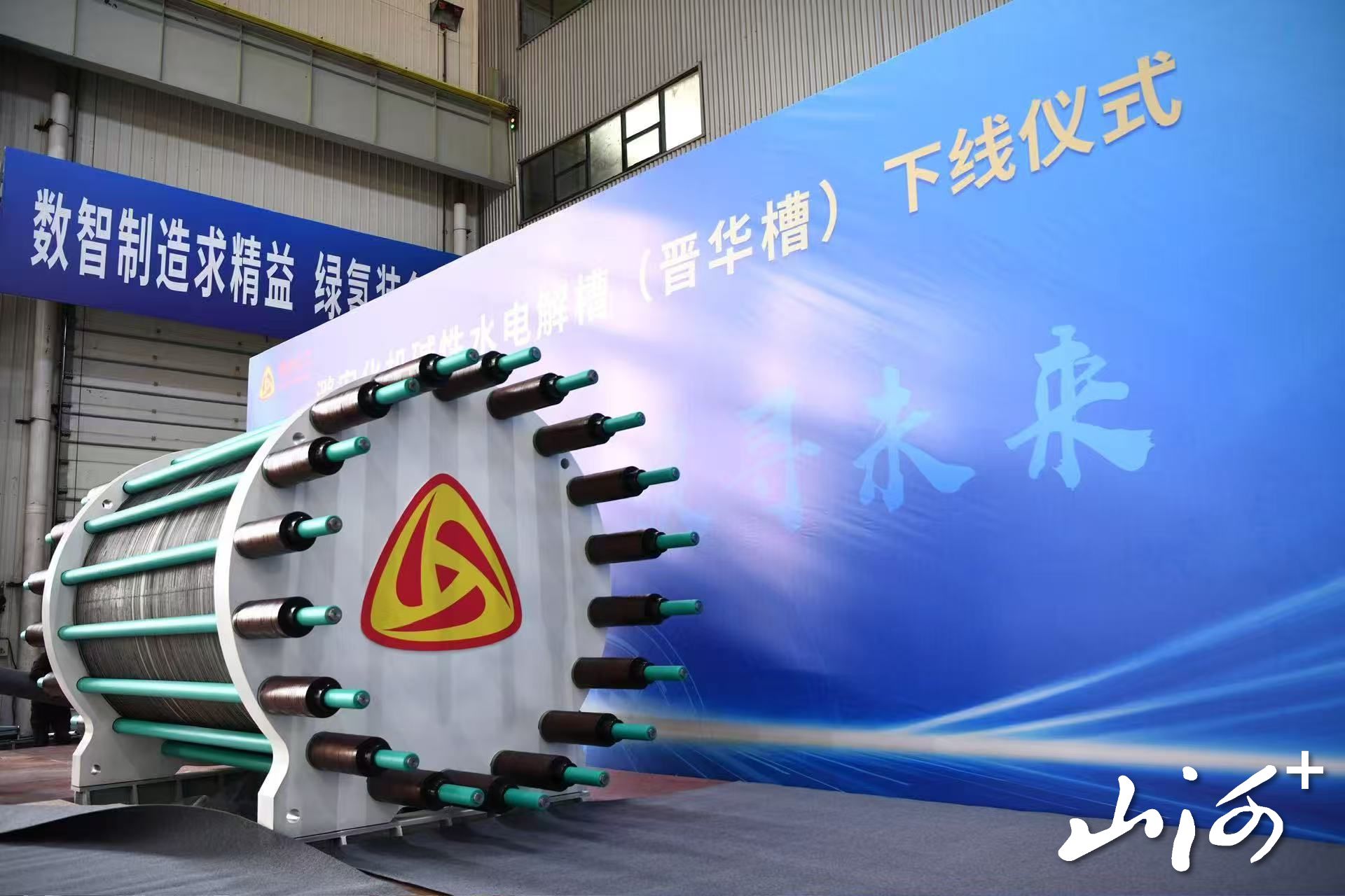 “近年来山西省积极布局氢能产业,潞安化工机械集团作为‘先行者’在发展氢能技术上不断突破。此次研发主要围绕低能耗、强波动碱性电解水制氢集成系统开展联合攻关,同时与国内知名智能化装备设计制造企业合作,融合自动控制、声光电检测、AI算法、云平台和MES管理系统,建设了山西省首条GW级(100台/年)自动化生产线,最终成功研制‘晋华槽’。”潞安化工机械集团党委书记、董事长任金锁介绍道。