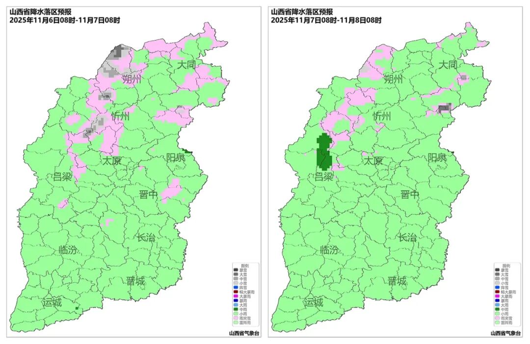 7日8时至8日8时:全省阴天间多云,有小雨,吕梁、忻州等地的部分地区有中雨,北中部局部山区有雨夹雪或小到中雪;东部部分地区有轻雾或雾。