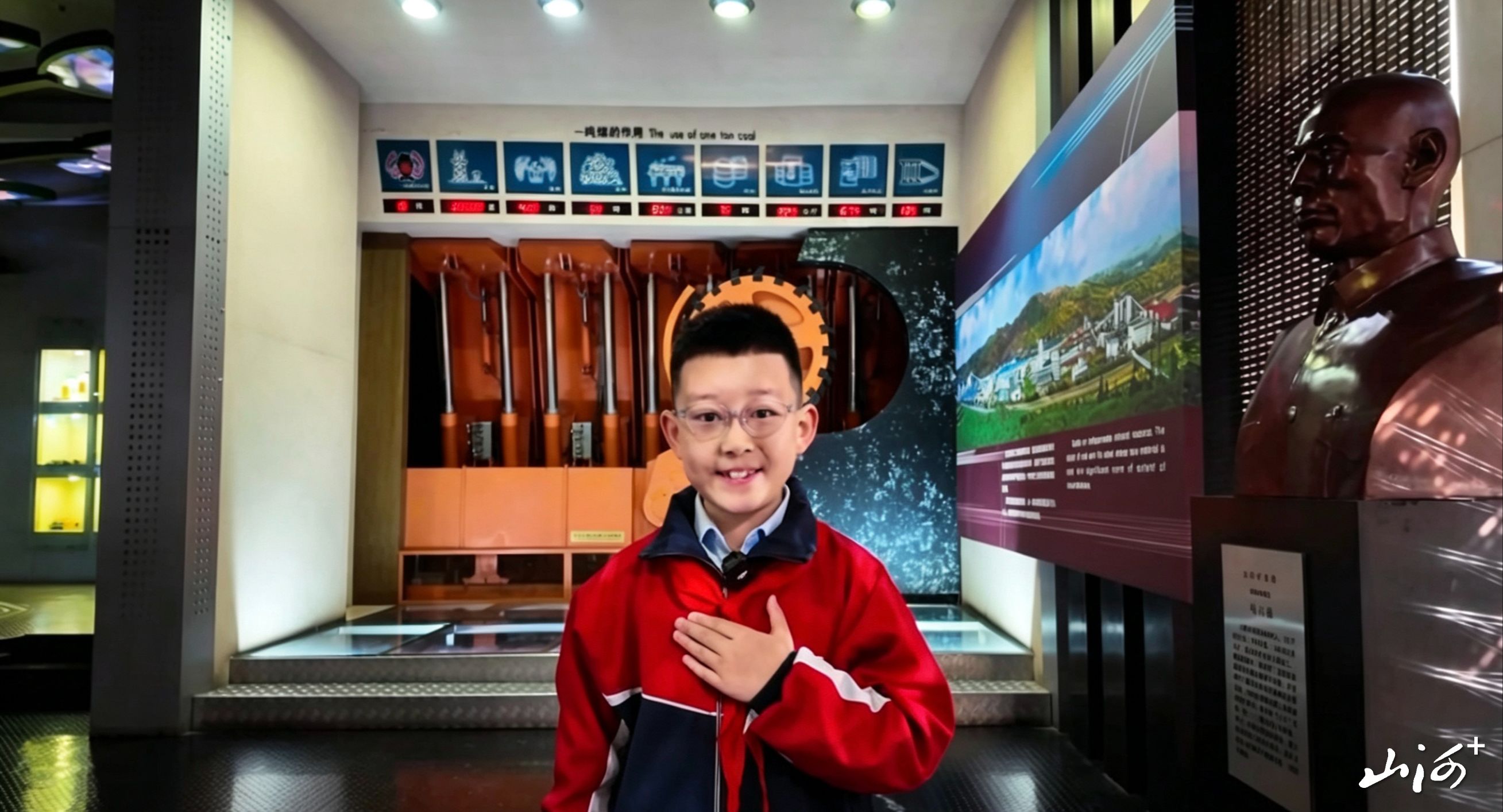 山西晚报小记者辛梓源在中国煤炭博物馆录制视频。