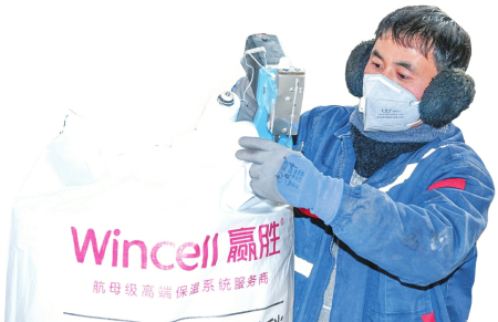 赢胜(山西)陶瓷纤维有限公司一线生产员工正在封装产品。