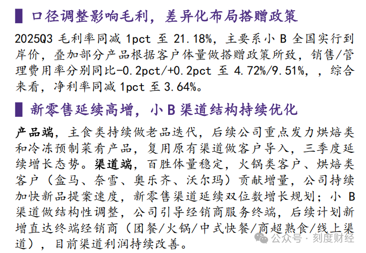 另一方面聚焦烘焙类、冷冻预制菜肴等高毛利品类,复用现有渠道资源进行客户导入,通过差异化竞争提升溢价能力。
