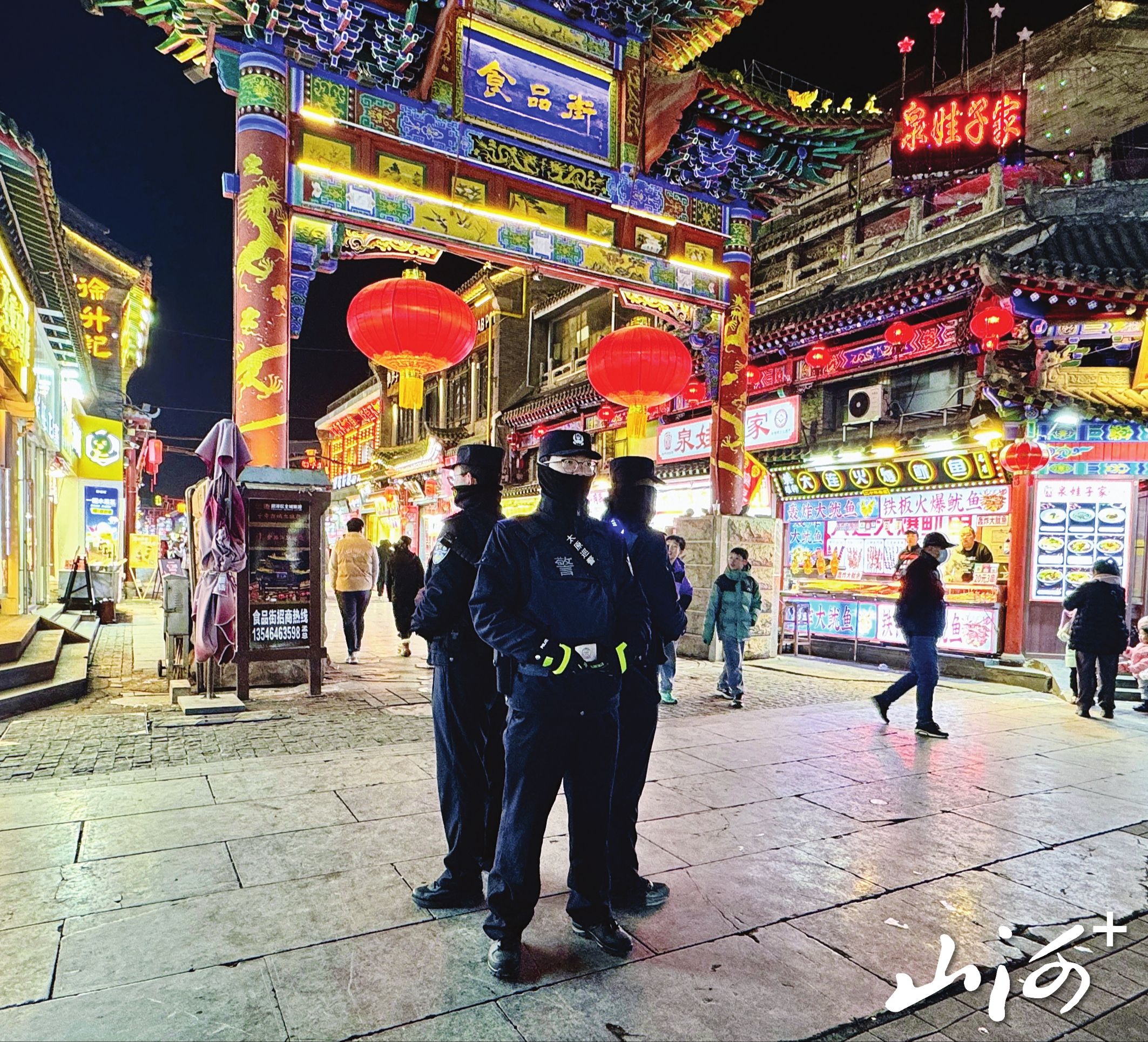 深夜十点,太原柳巷步行街人潮渐散。警用无人机的灯光掠过街角,便衣民警的目光仍在人群中无声流动。商场保安低声对着对讲机交流,警犬在民警身边安静巡视。