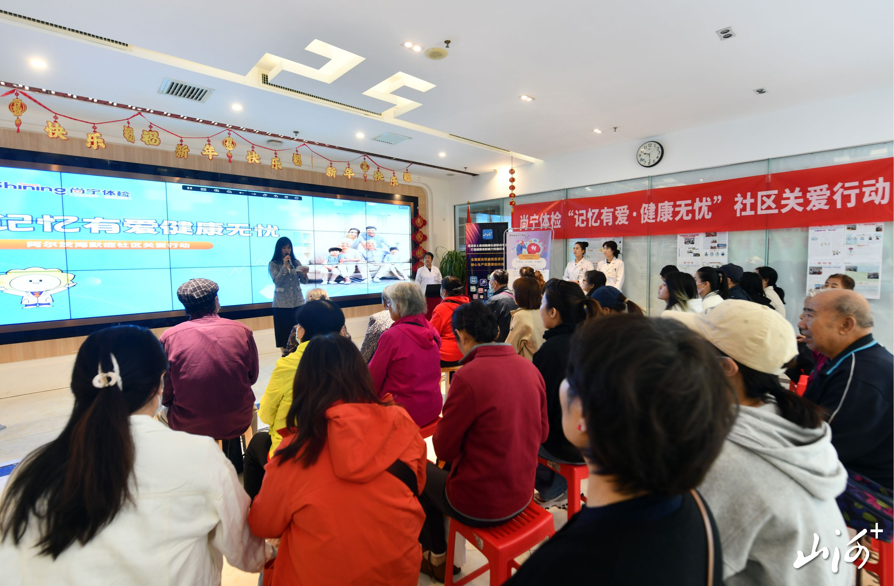 当主持人刚问出“请问:阿尔茨海默病日是哪天?”时,坐在第一排几个老人几乎同一时间就举起了手想要回答,但还有人更快地直接喊出了“后天”,惹得老人们纷纷抱怨:“你咋没举手?”“人家主持人没让你回答!”……一时间,现场热闹不已。紧接着,随着“我们尚宁体检是什么时候成立的?”“阿尔兹海默病初期会有哪些表现?”“尚宁体检提供哪些阿尔茨海默病相关服务?”等一系列问题的抛出,现场居民的参与热情更是到达了高峰。